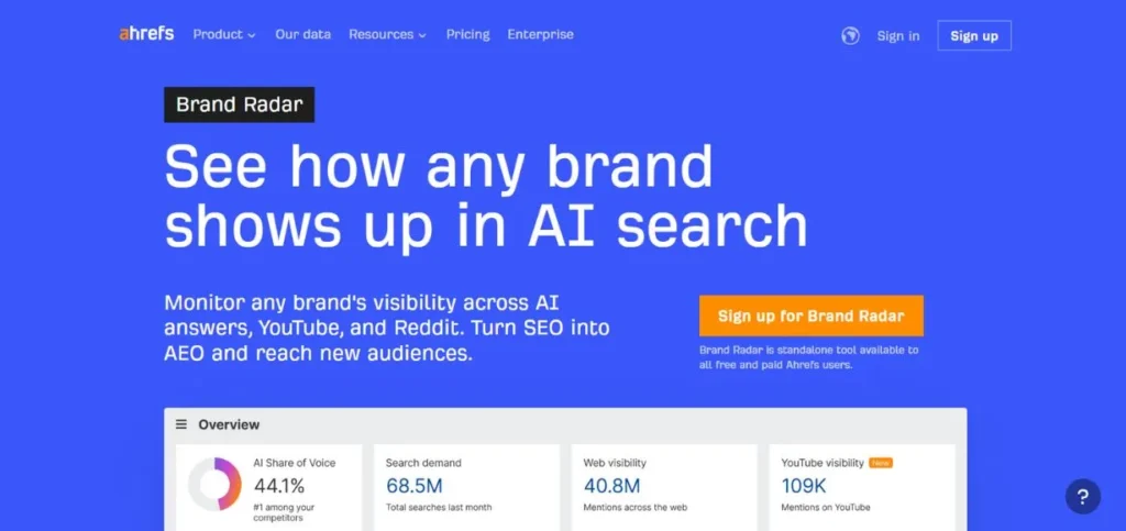 | Ahrefs Brand Radar | 4.6/5 | Extensive keyword database leveraging |