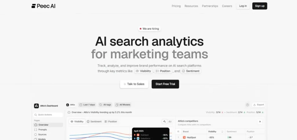 | Peec AI | 4.2/5 | Clean dashboards with straightforward metrics |