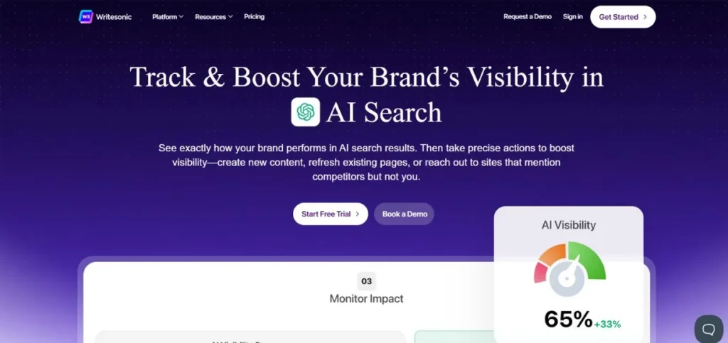 Although its competitive analysis functions are not as in-depth as dedicated monitoring tools, Writesonic is best at converting GEO intelligence into direct content enhancements, which is why it would best fit the teams in which writers and SEO experts work hand in hand.