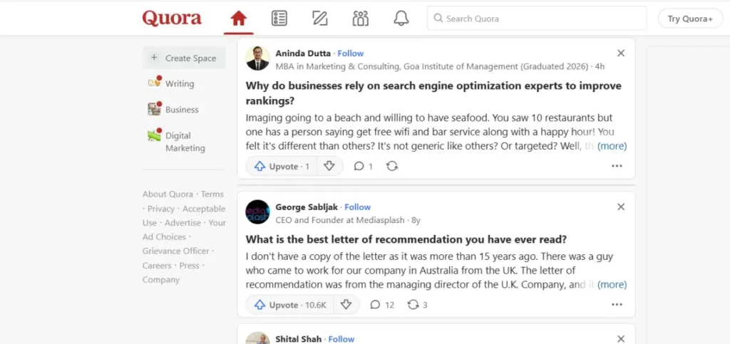 | Quora | 4.0/5 | Professionals answering questions in their expertise areas |